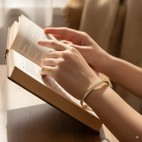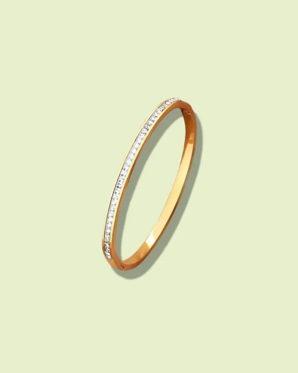 This elegant bracelet features a continuous line of dazzling cubic zirconia stones, meticulously set along its top surface, creating a brilliant pave effect. It’s a timeless accessory that adds a touch of luxurious sparkle and refined charm to any look, perfect for layering or wearing as a standalone statement.