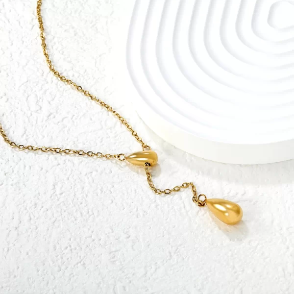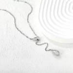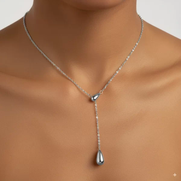 Inspired by the gentle descent of an angel’s tear, this exquisite necklace, aptly named “Angel Tear,” captures a moment of serene beauty. Crafted with a delicate chain that cascades gracefully, it culminates in a lustrous, teardrop-shaped pendant. This piece is designed to lie elegantly on the décolletage, drawing attention with its subtle gleam. Whether in radiant gold or shimmering silver, the “Angel Tear” necklace is more than just an accessory; it’s a symbol of purity, grace, and understated elegance, perfect for adding a touch of celestial charm to any outfit.
