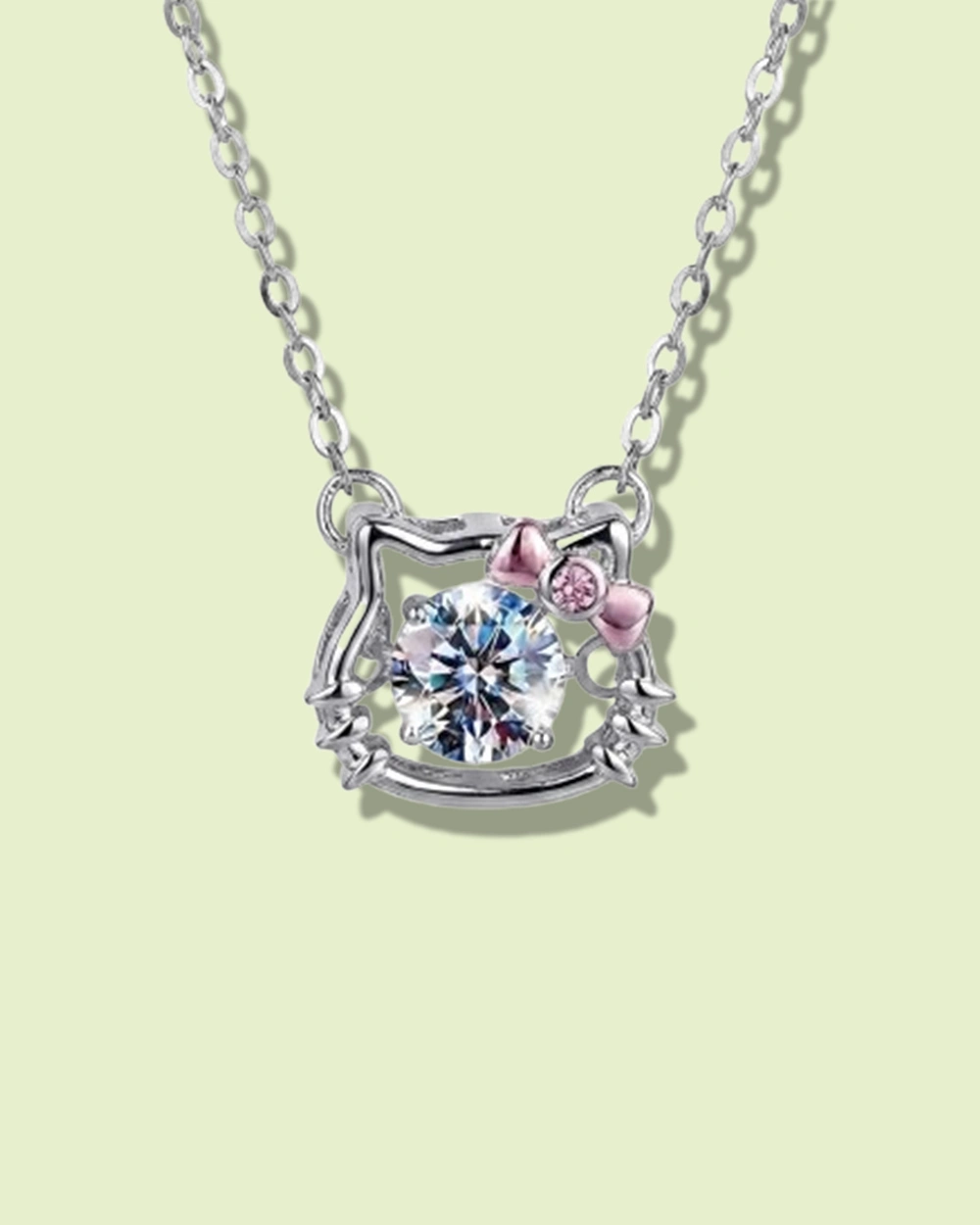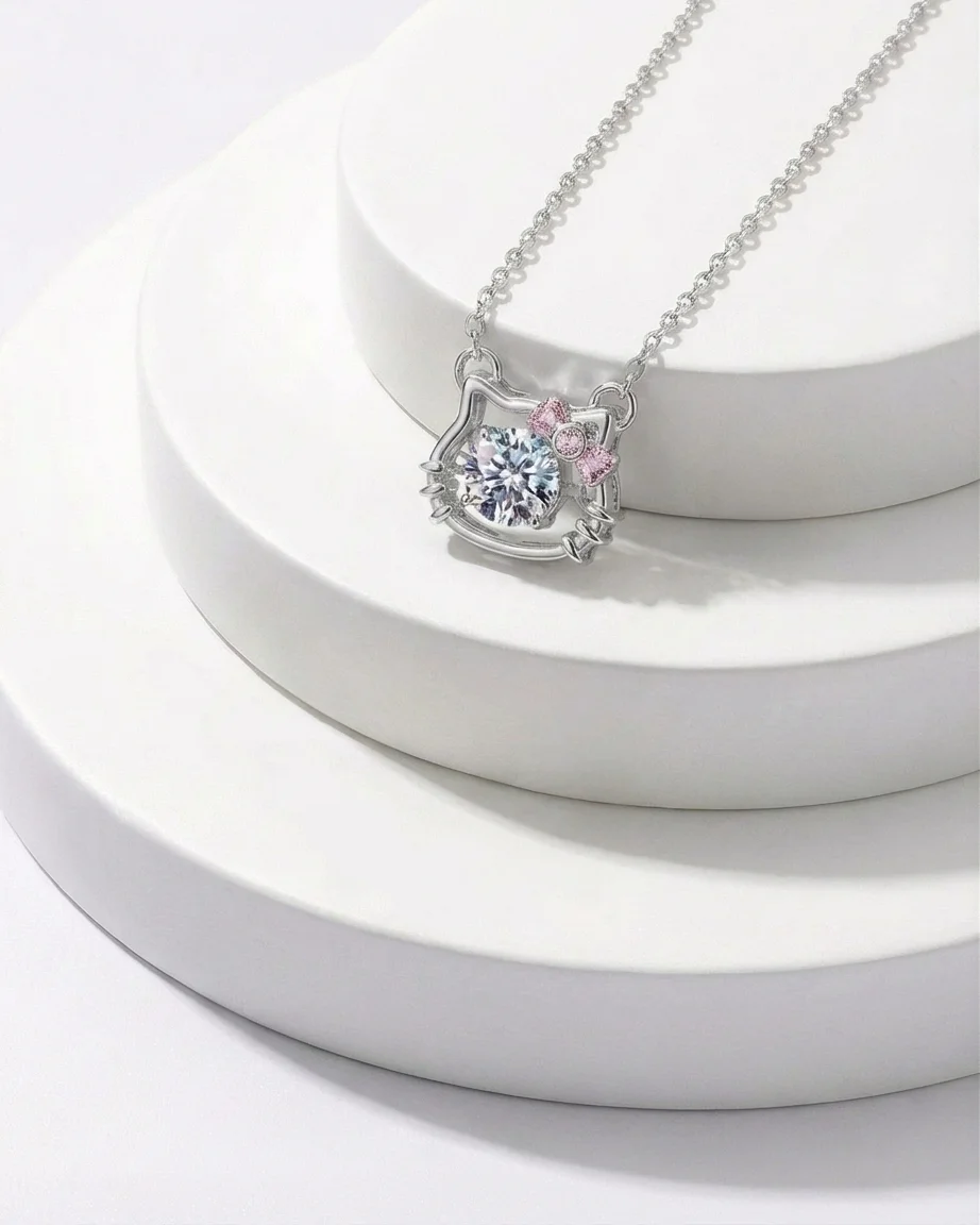 Framed in a delicate kitty silhouette, the center stone shines brilliantly, while a tiny bow adds a sweet finishing touch.