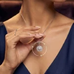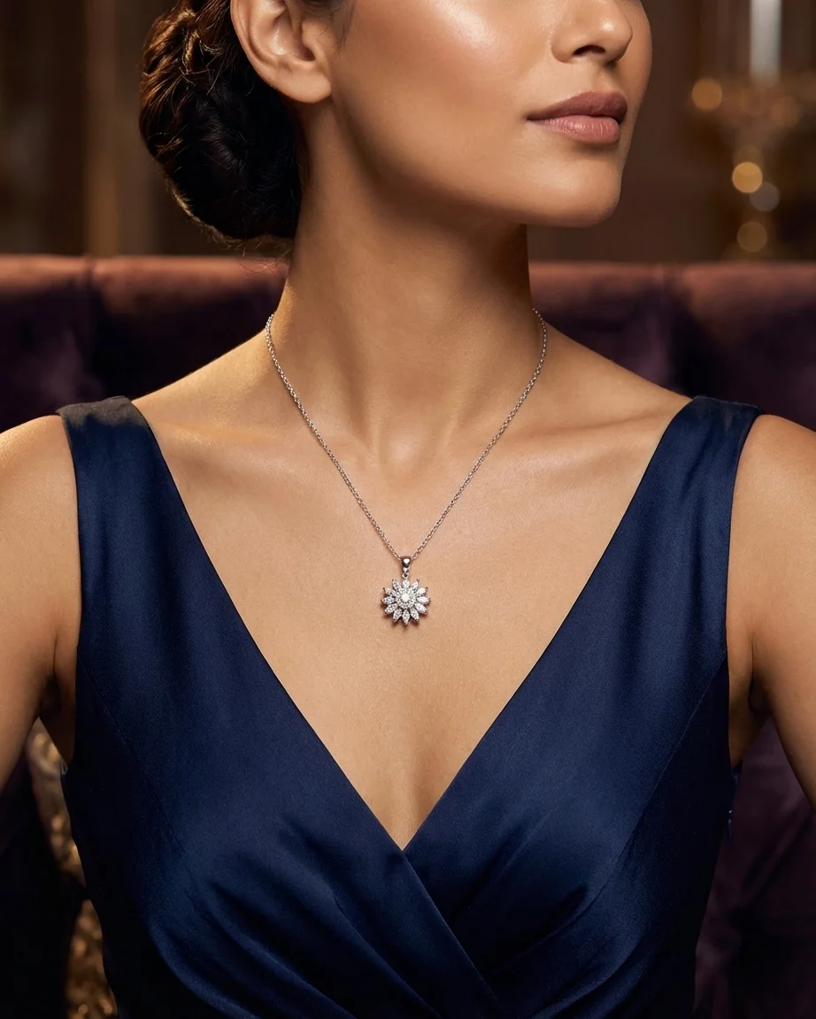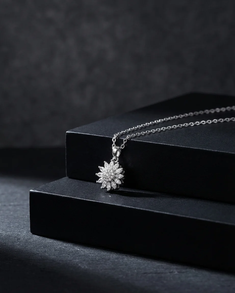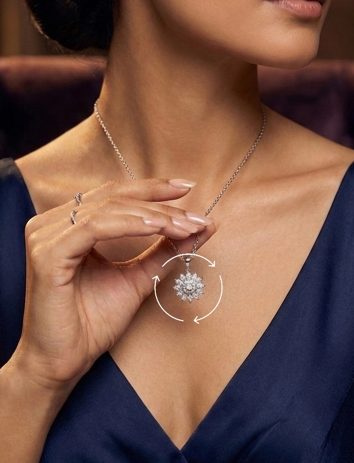 The pendant gently spins with every motion, catching light from every angle—
