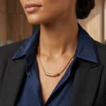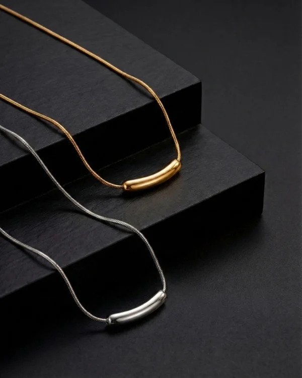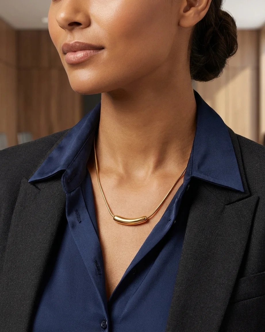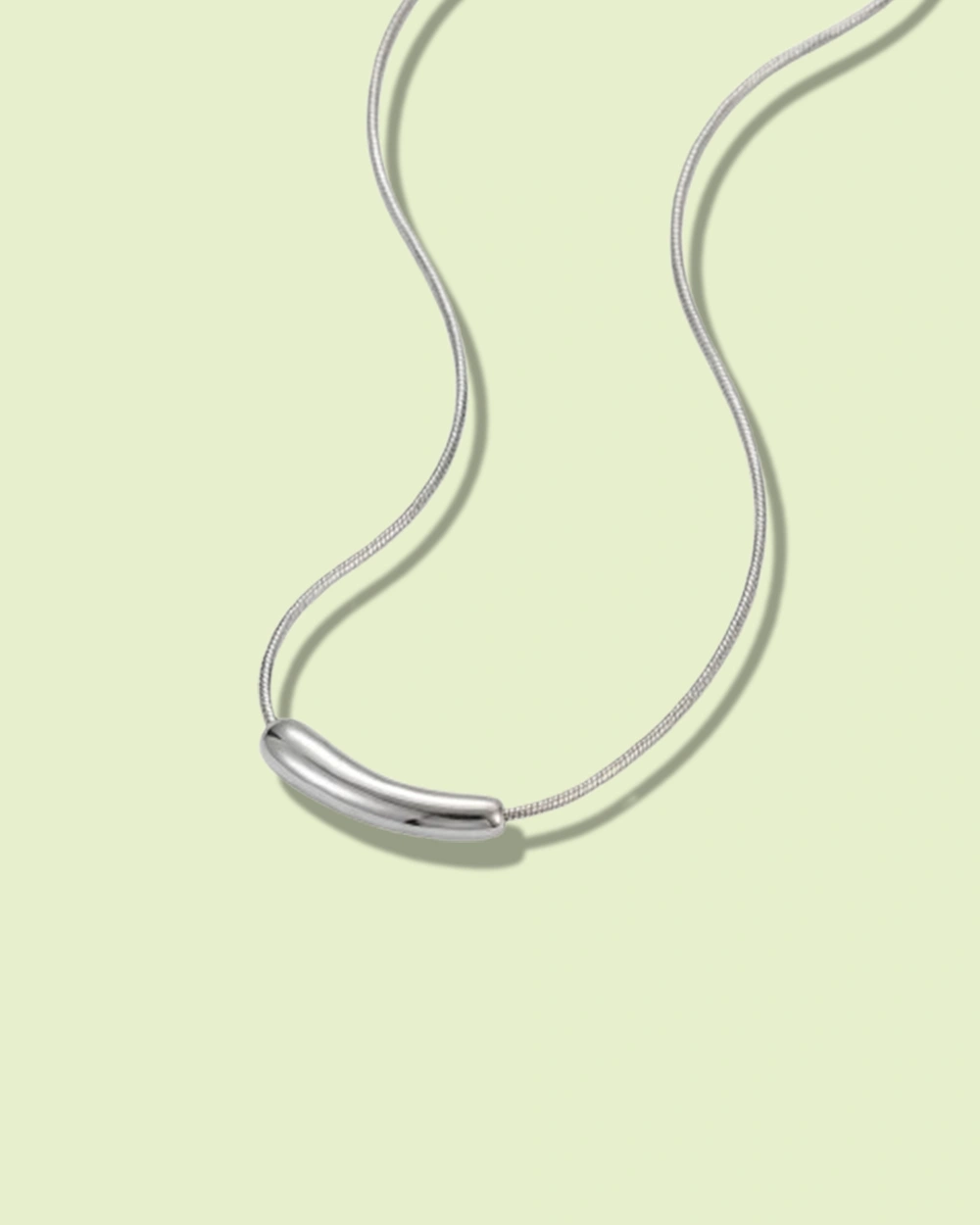 The soft, fluid shape reflects light effortlessly, creating a subtle glow that moves with you.