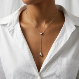 This exquisite “Golden Dewdrop” necklace features lustrous, natural oval pearls gracefully spaced along a durable 3mm stainless steel 18k gold-plated chain. Blending classic elegance with modern resilience, this piece offers a sophisticated shimmer that’s perfect for elevating everyday wear or adding a touch of refined charm to special occasions.