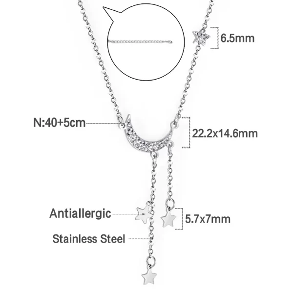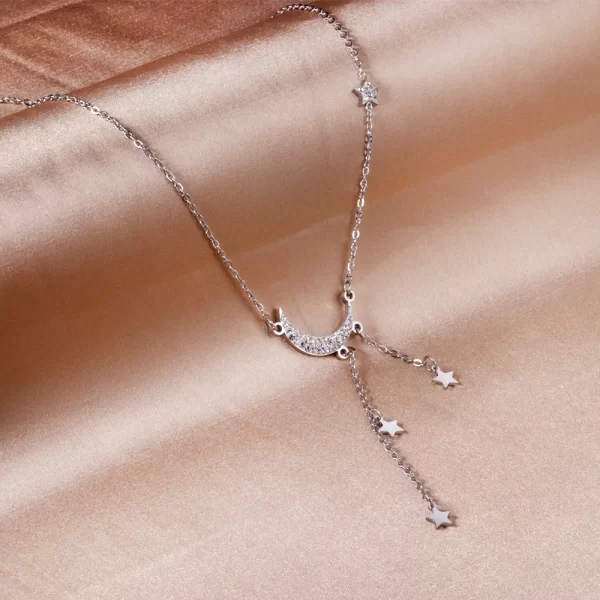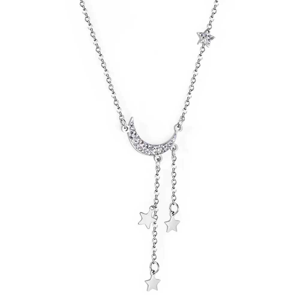 Dazzle under the moonlight with our enchanting Lunar Sparkle Lariat Necklace. This sterling silver piece features a pavé-set crescent moon, from which delicate chains cascade with shimmering star charms. A single star accents the main chain, adding an extra touch of celestial magic. Perfect for an elegant statement that captures the beauty of the night sky.