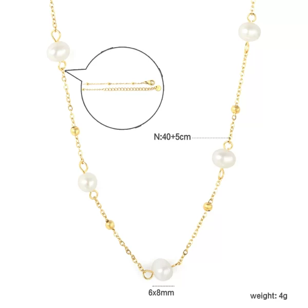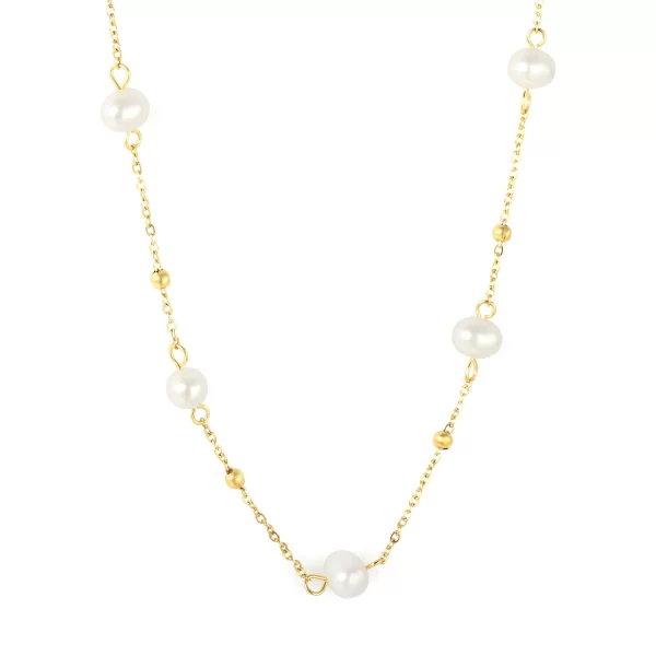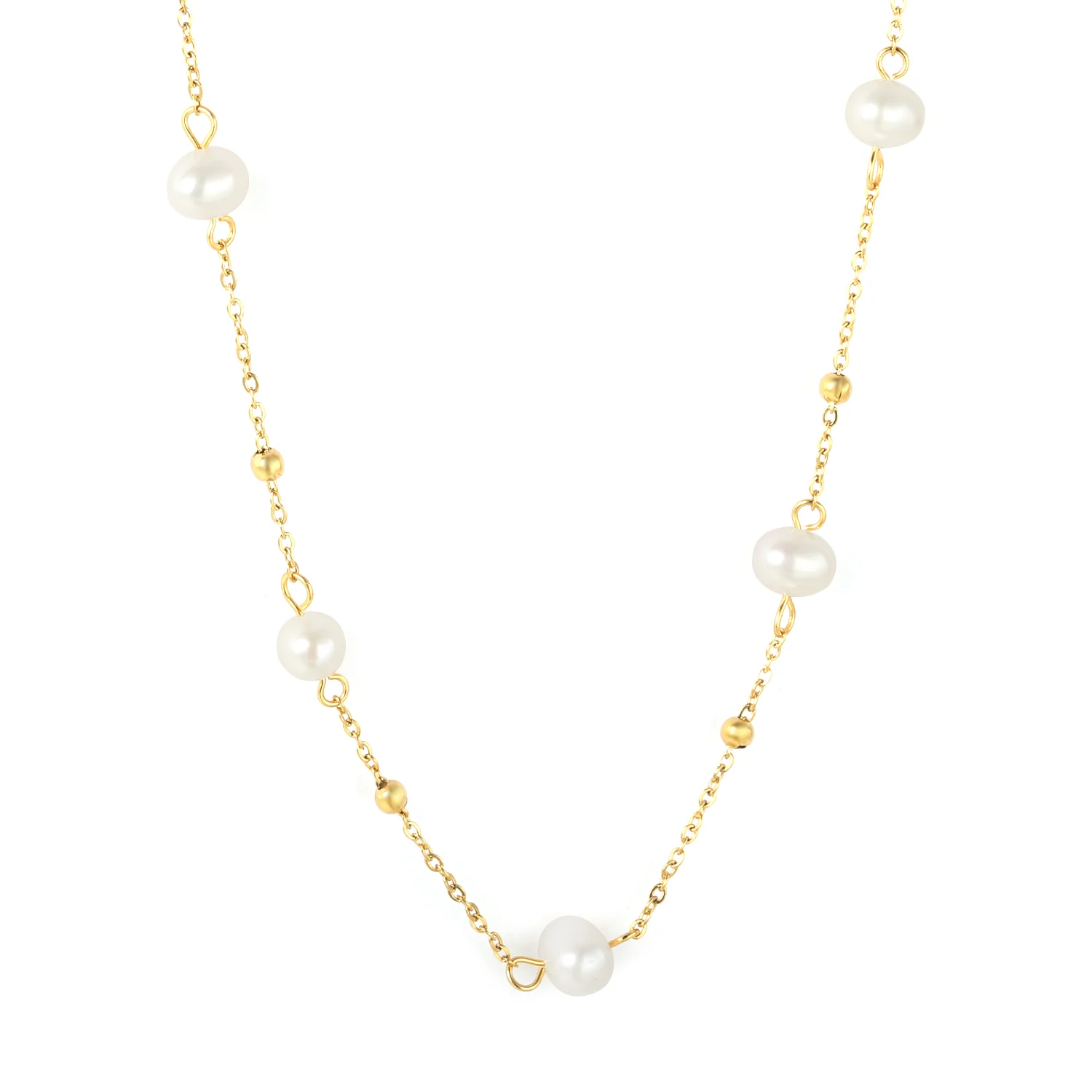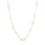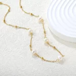 Adorn yourself with the enchanting “Starlight Pearl Chain” necklace. This delicate piece features luminous freshwater pearls gracefully interspersed with tiny golden beads along a fine gold-toned chain. Its elegant design offers a timeless charm, perfect for adding a touch of sophisticated glow to any ensemble, whether for daily wear or a special evening.